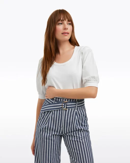 Mix things up. Our Short Sleeve Mixed Media Top is made from 100% cotton jersey and poplin and finished with a flattering scooped neckline. The result? A shirt that’s as easy to wear as your favorite tee, but significantly more polished.