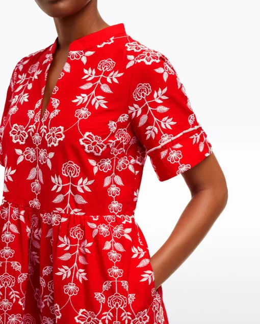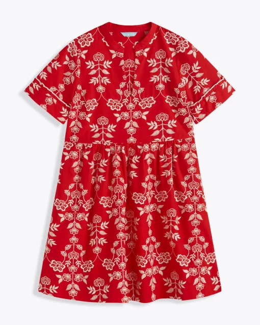 Threads up. Our Simone Embroidered Mini Dress is made from soft 100% cotton embroidered with a gorgeous, graphic floral design. The easy shape is finished with classic details like a stand-up collar and full sleeves, so it’s a great dress for work or the weekend. Wear it with slip-on sneakers, sandals or heels.