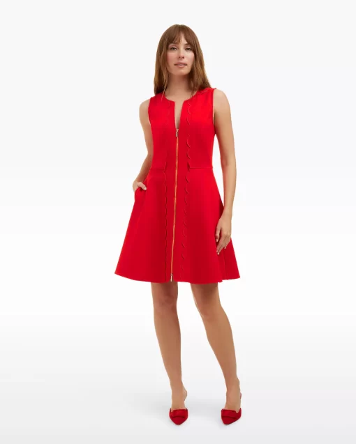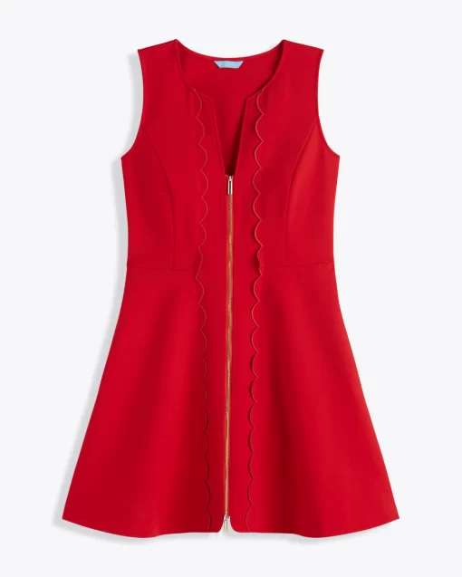 Come full circle. Our Sleeveless Mae Love Circle Dress in Red is a new take on our iconic Love Circle silhouette, made famous by Reese herself. This version is constructed from a structured ponte with the perfect amount of stretch and features a cool two-way zipper in the front. Try it with high heels on your next desk-to-dinner day!