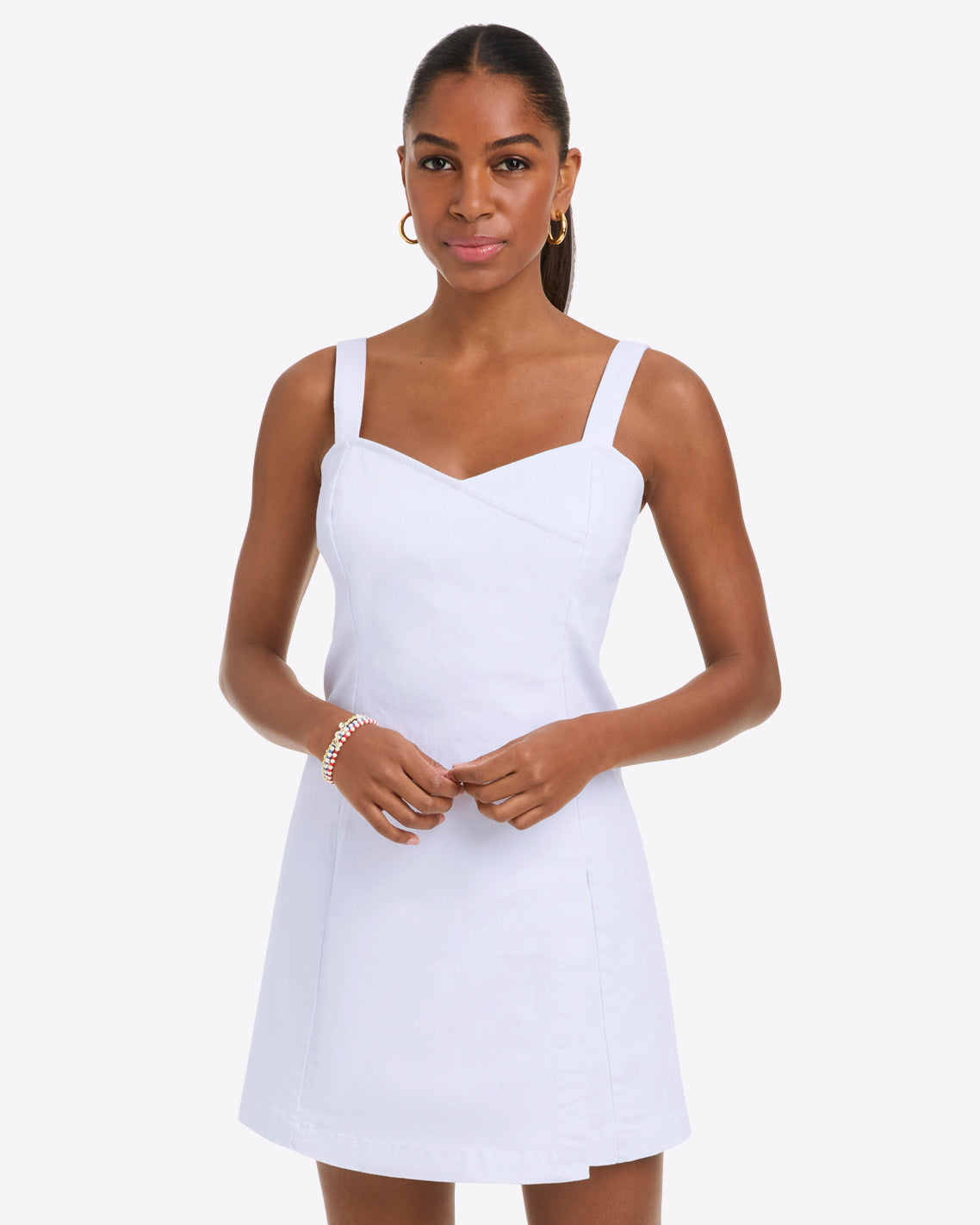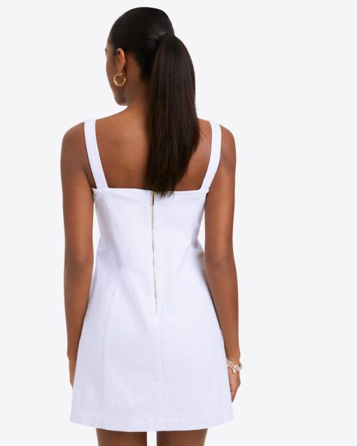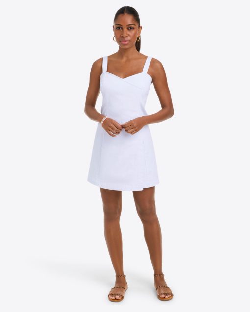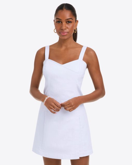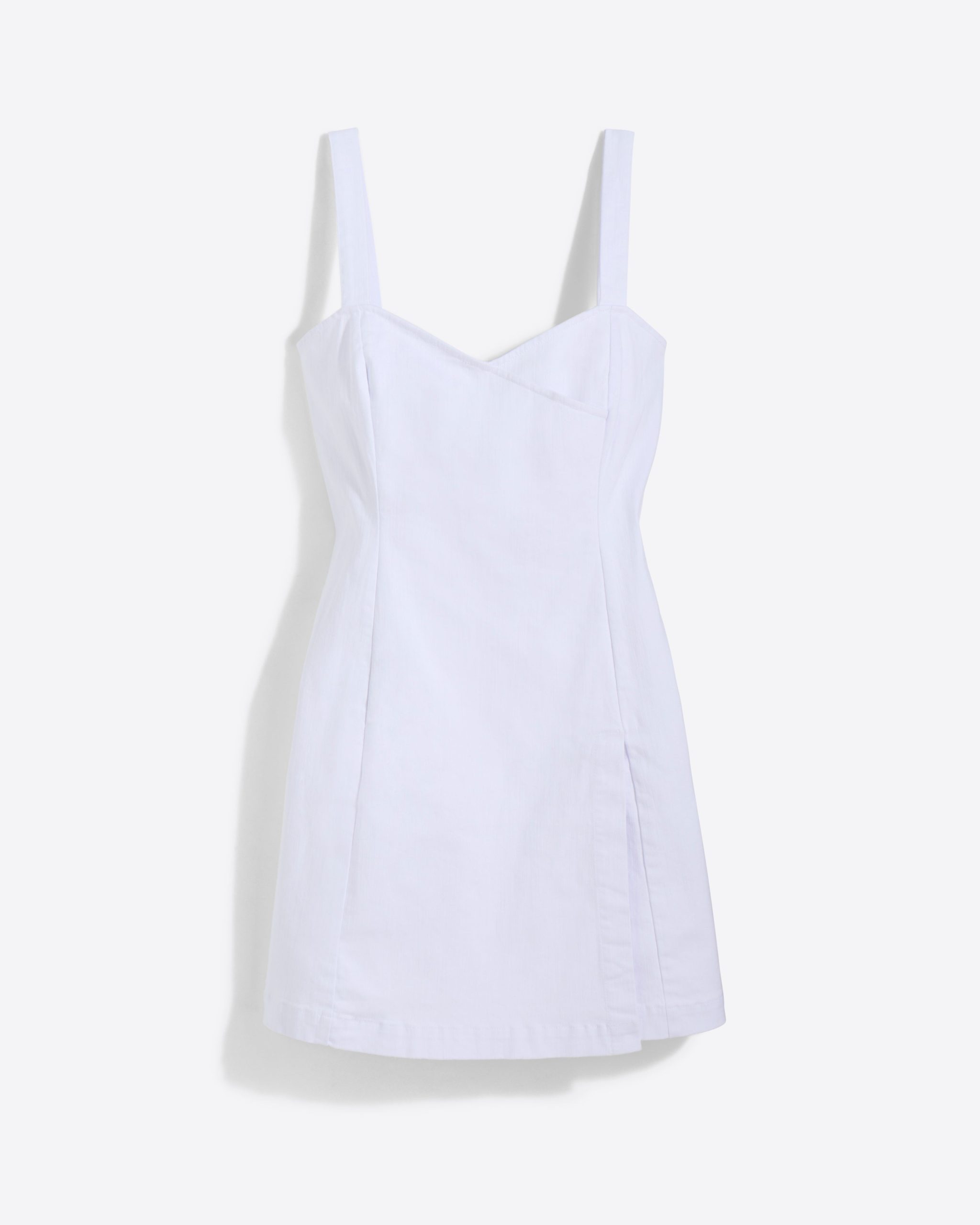 Short and sweet. Our faux-wrap Charlotte Mini Dress is cut from white denim with the perfect amount of stretch and finished with a sweetheart neckline and a left-leg slit, so it’s as cute as it is comfortable. Wear it with stacked-heel sandals for your next night out!