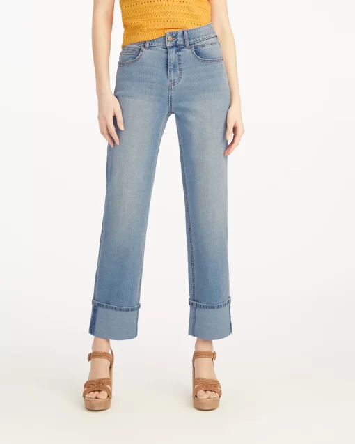 It’s cuffing season. Our Cuffed Jeans are made from a medium wash denim with the perfect amount of stretch and finished with cool cuffs at the hem. Wear them with sweaters, T-shirts, tank tops, sneakers, sandals and heels.