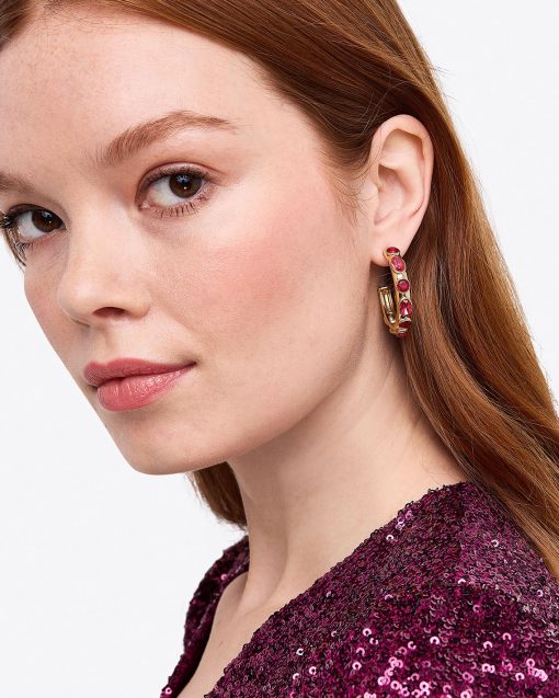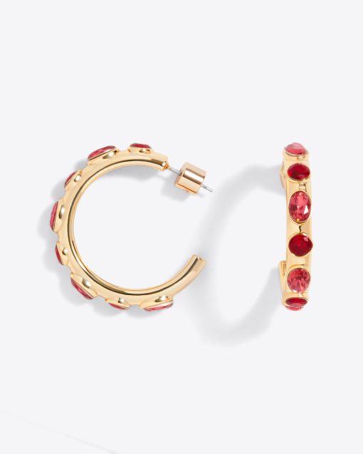 Sparkle plenty. Made from brass plated with 10K gold and sparkly glass gems, our Studded Hoops add a festive vibe to everything from white T-shirts to little black dresses.