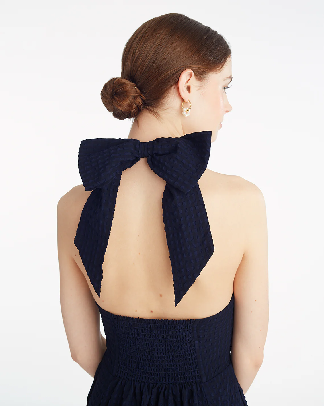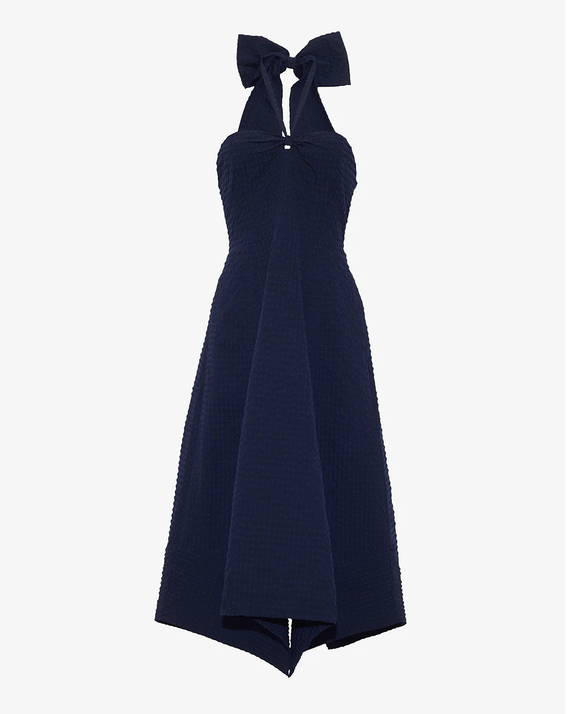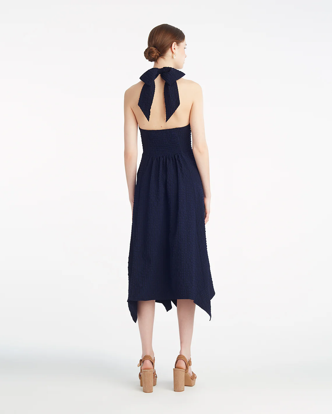 It’s shoulder season. Show yours off in our Violeta Halter Neck Dress in Seersucker, a party-perfect dress with a flattering self-tying halter neckline, smocked back panel and handkerchief hem. Skip the necklace and accessorize with earrings and bracelets; finish the look with a pair of high-heeled sandals.