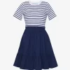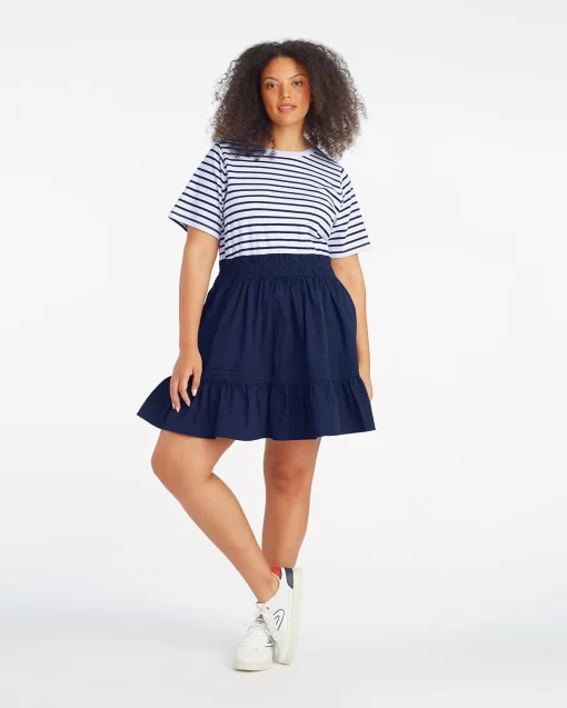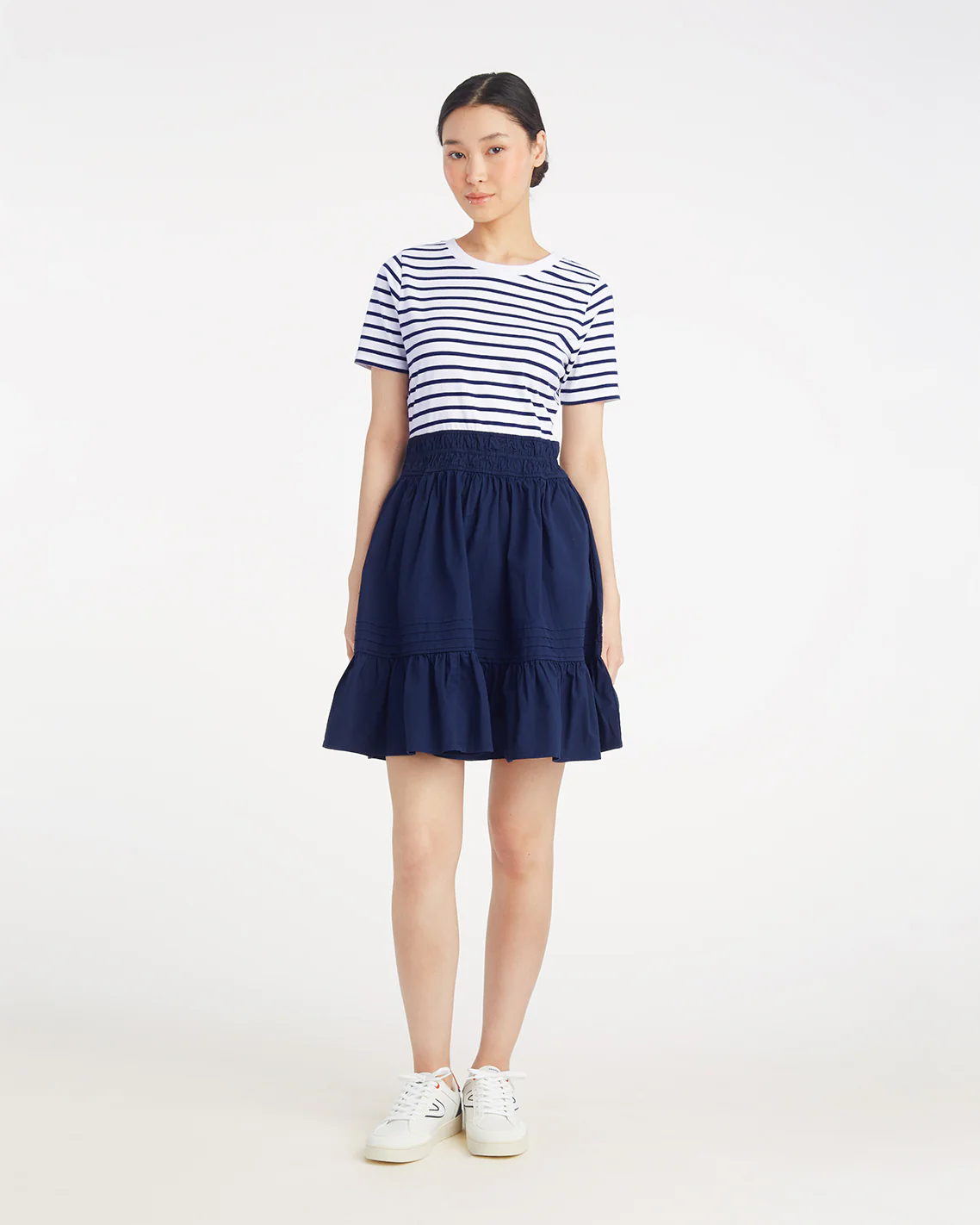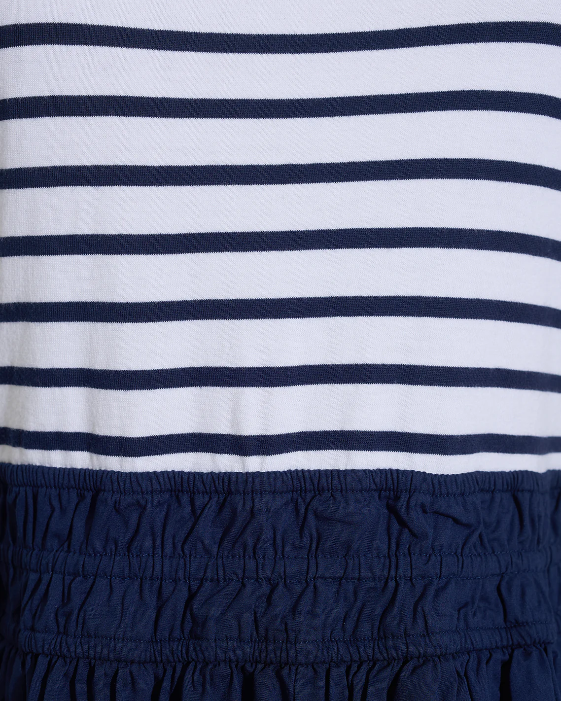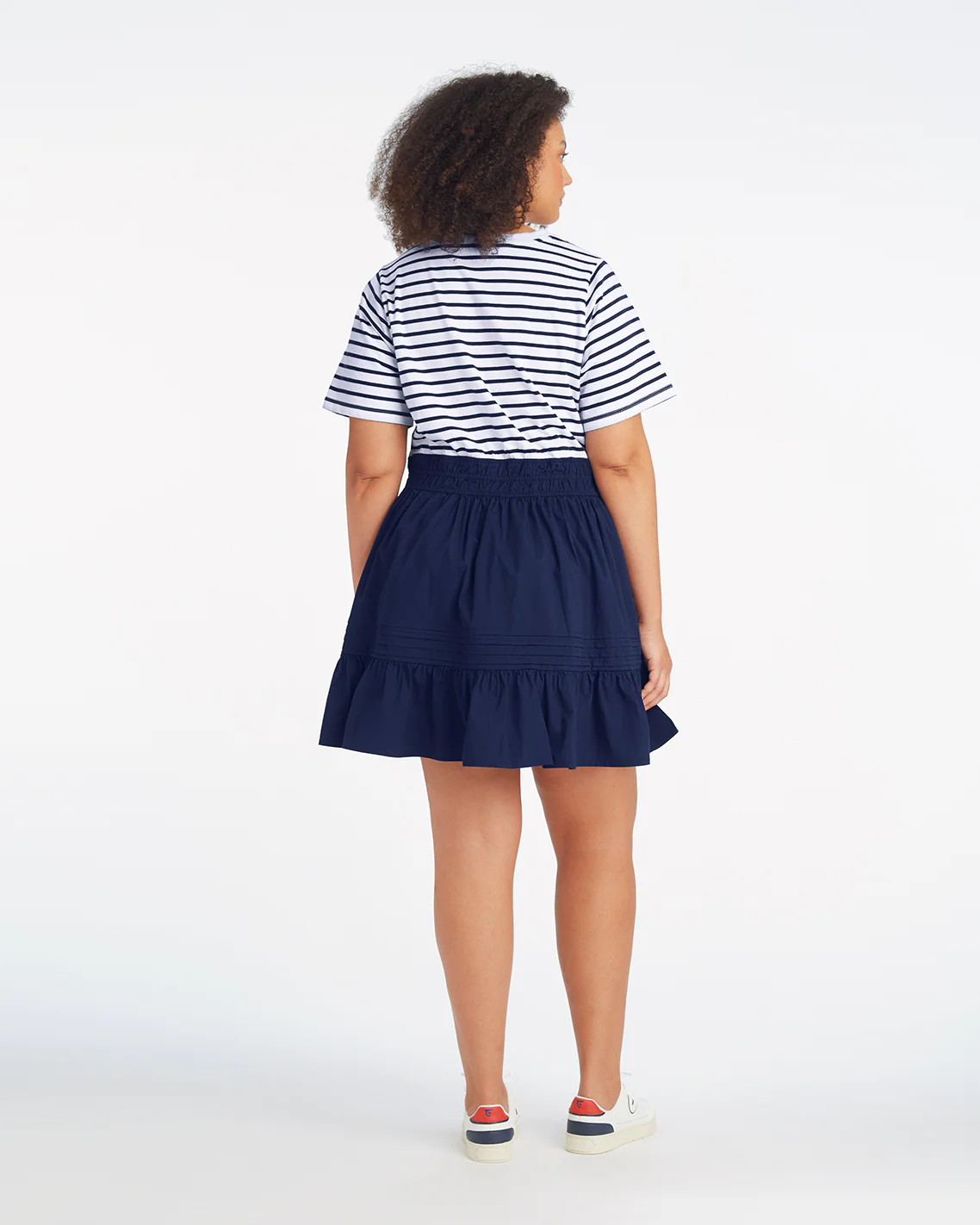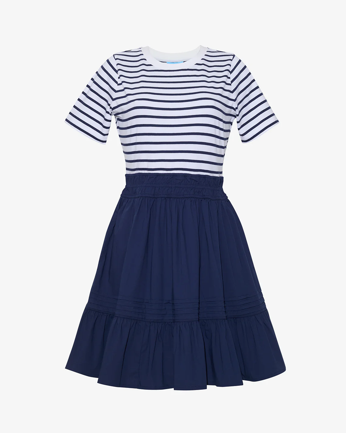 Mix things up. Our Wilson Midi Dress in Navy Stripe pairs a striped crewneck top with a perfectly coordinated navy skirt, so you’ll look put together in seconds. Wear it to run errands with your favorite sneakers, or switch to sandals (high- or low-heeled) for dinner dates, drinks with friends and whatever else you’ve got planned.