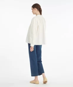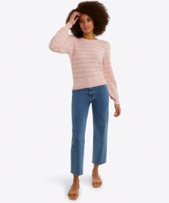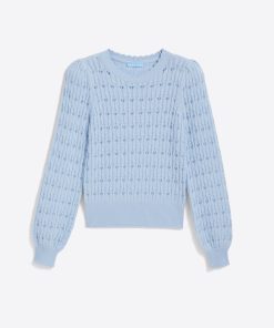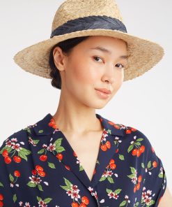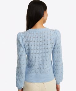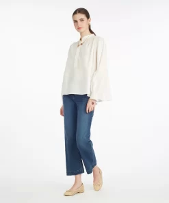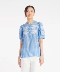 Draper James Women’s Puff Sleeve Top With Floral Embroidery | Blue Stripe Floral Embroidery